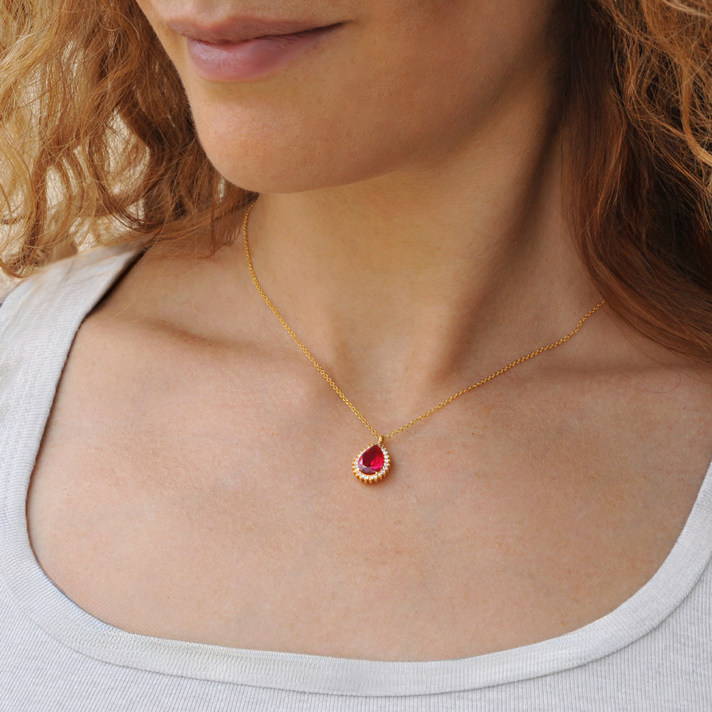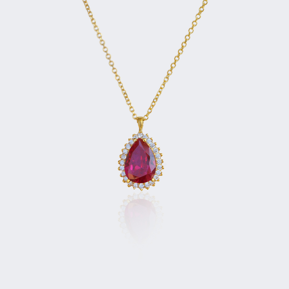Κολιέ δάκρυ με κόκκινο ζιργκόν